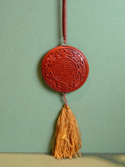 CHINESE RESIN PENDANT NECKLACE ON RIBBON WITH TASSEL