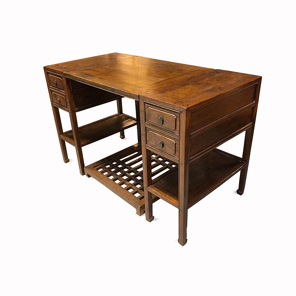 CHINESE SCRIBES KNEEHOLE DESK WITH FOUR DRAWERS AND LATTICE FOOT REST IN FOUR PARTS MING DYNASTY 87 CM HIGH 141 CM WIDE 70 CM DEEP