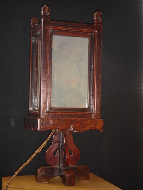 CHINESE SQUARE WOODEN TABLE LANTERN / LAMP WITH OPAQUE GLASS (X2)