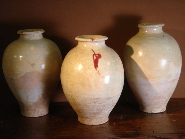 CHINESE TANG PERIOD VASE CREAM GLAZED CERAMIC 11/i - 12/i HIGH 28 CM - 31 CM 618 - 907 AD (X3)