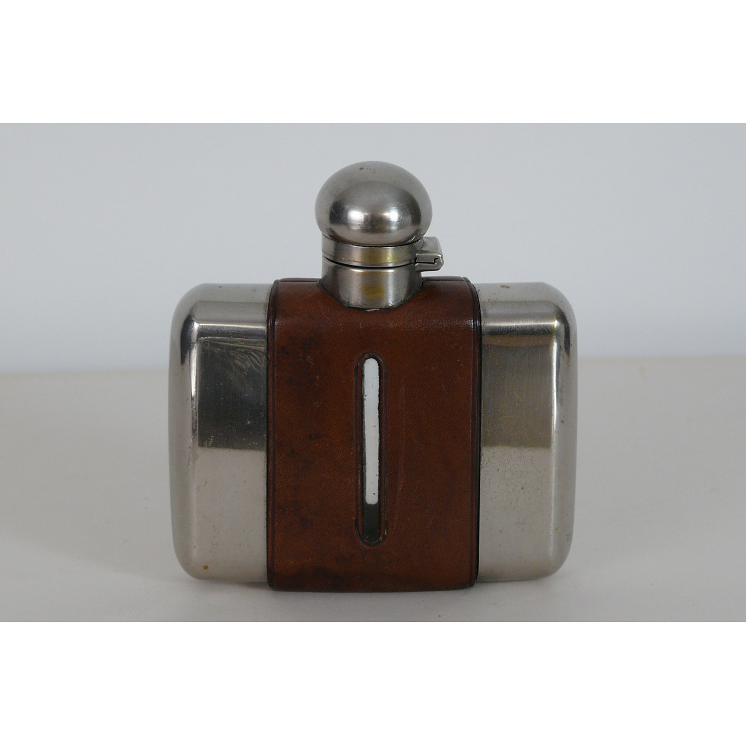 CHROME AND LEATHER EXTRA WIDE HIP FLASK