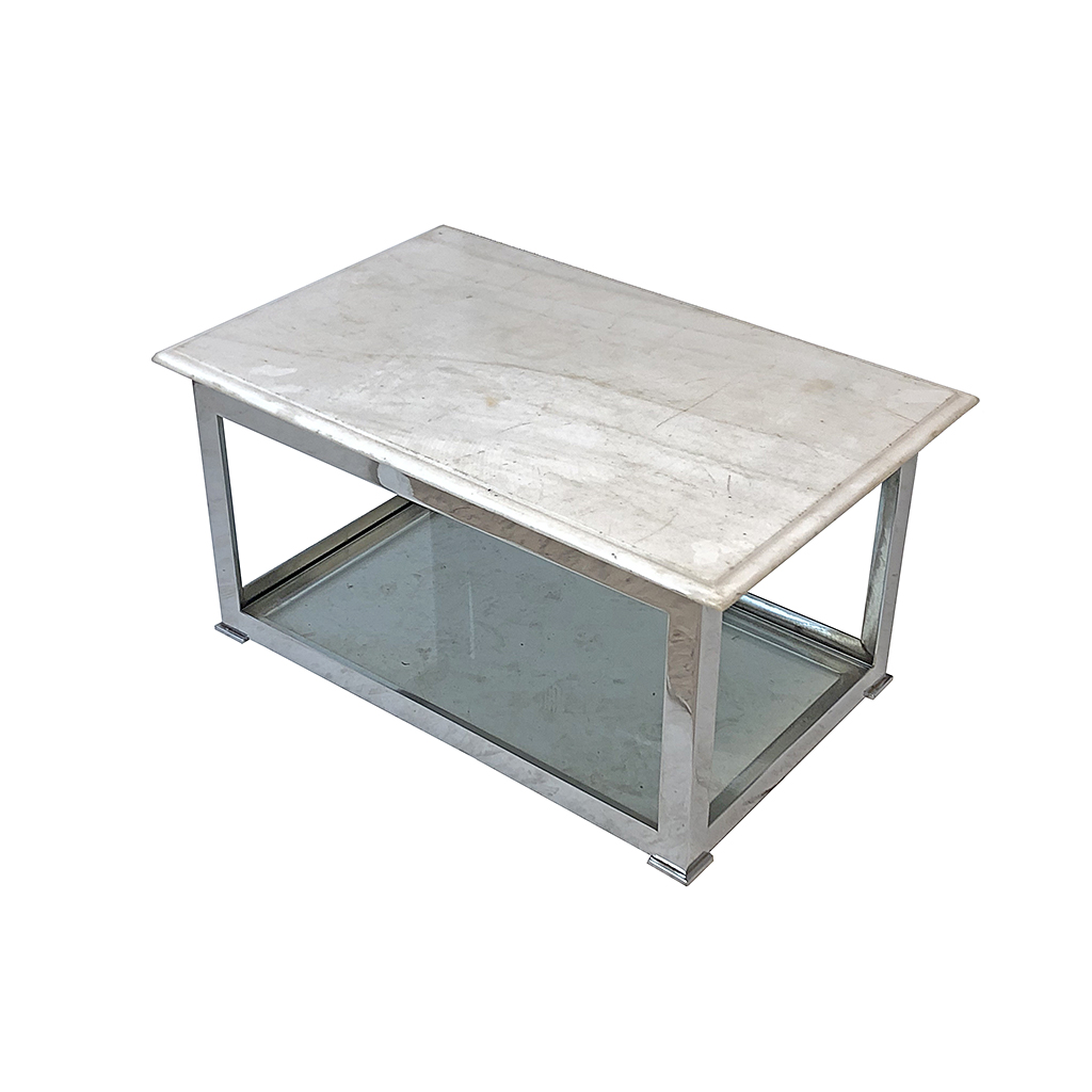 SMALL WHITE MARBLE COFFEE TABLE ON A CHROMED STEEL BASE CIRCA 1960