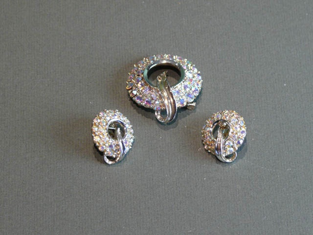CIRCLE METAL MULTI COLOURED PASTE BROOCH WITH MATCHING EARRINGS