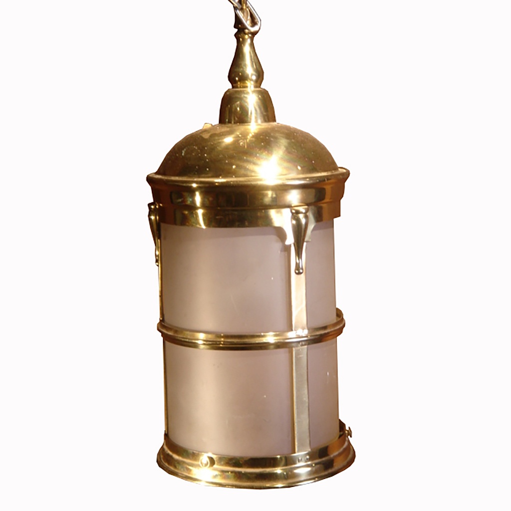 CIRCULAR BRASS HALL LANTERN FROSTED GLASS CIRCA 1905 45 CM HIGH