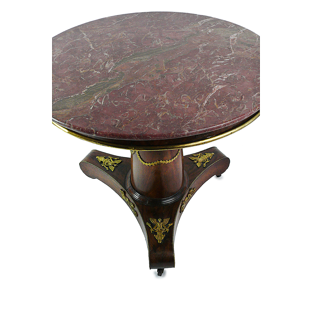 CIRCULAR EMPIRE PEDESTAL TABLE MAHOGANY WITH ORMOLU MOUNTS ROUGE ROYALE MARBLE TOP 84 CM DIAM 73 CM HIGH
