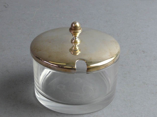 CIRCULAR GLASS PARMESAN DISH / CONDIMENT POT WITH SILVER LID