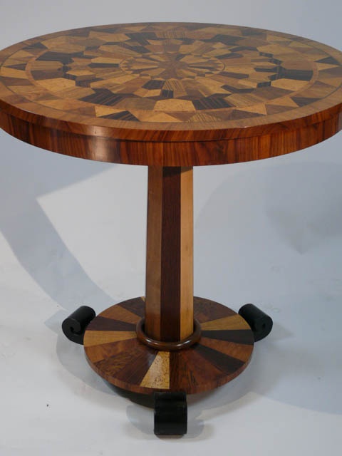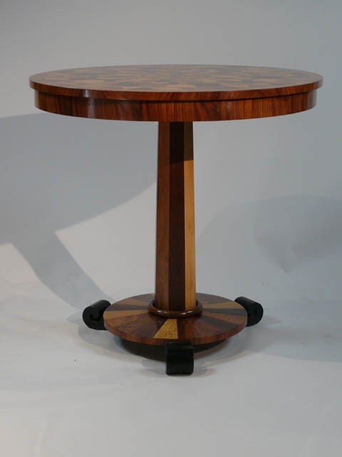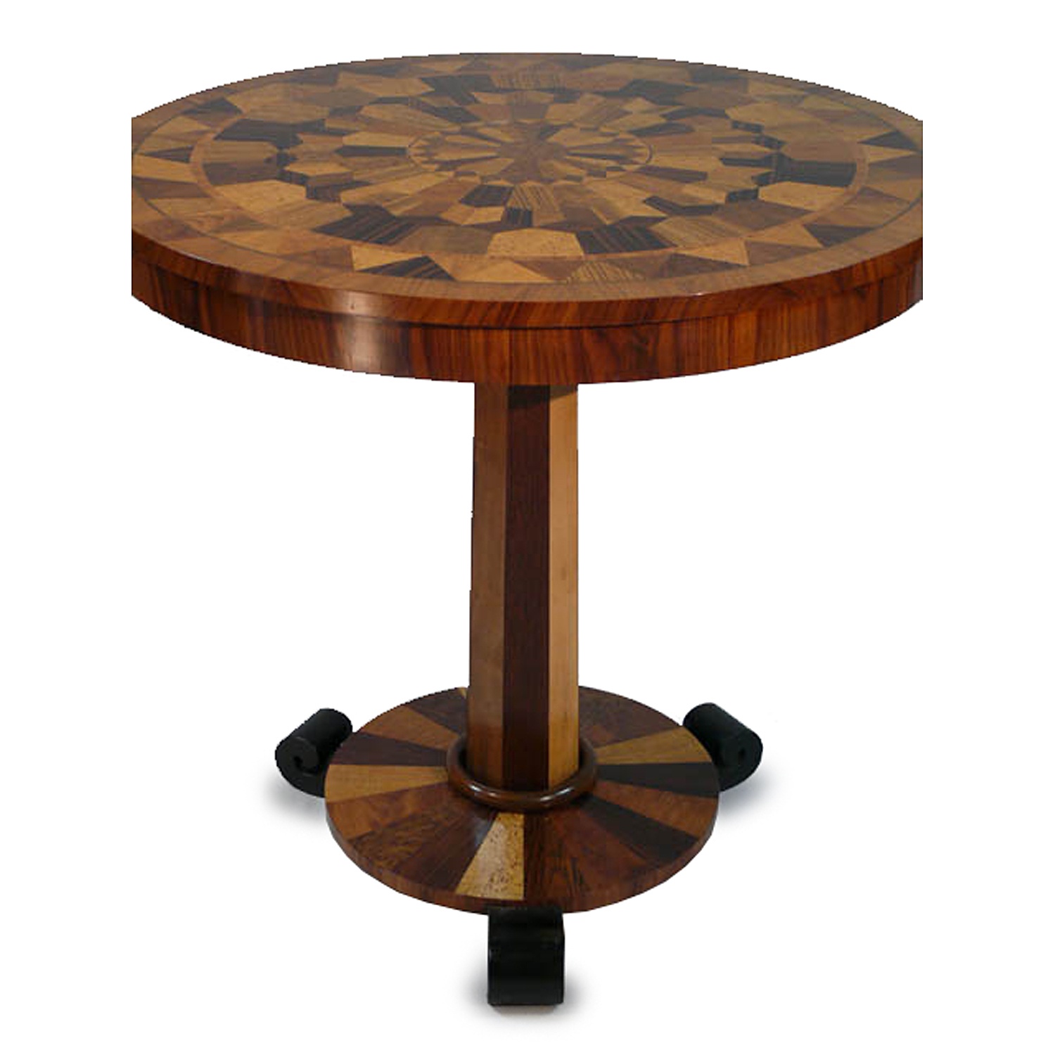 CIRCULAR OCCASIONAL TABLE TUNBRIDGE WARE SPECIMEN INLAID WOODS WITH PEDESTAL BASE 72 CM HIGH 76 CM DIAM (X2)
