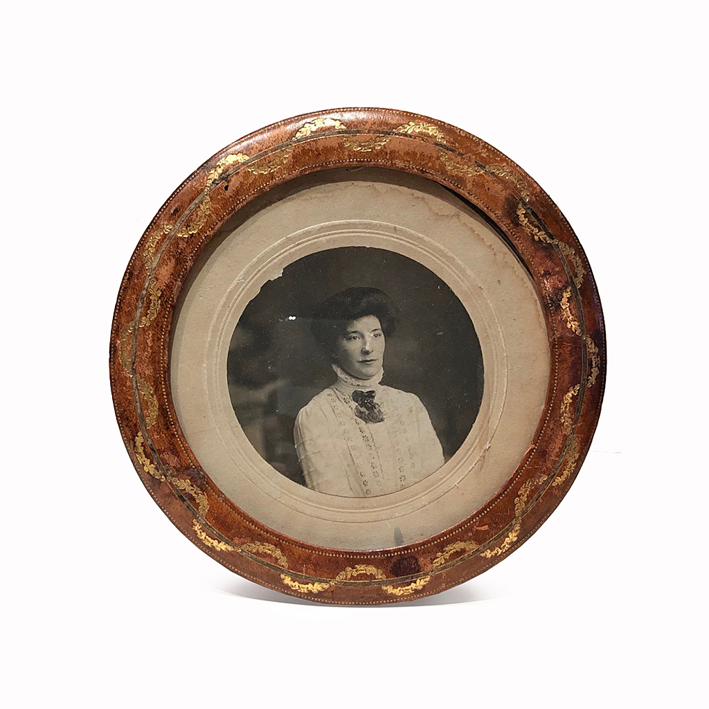 CIRCULAR TOOLED TAN LEATHER PHOTO FRAME