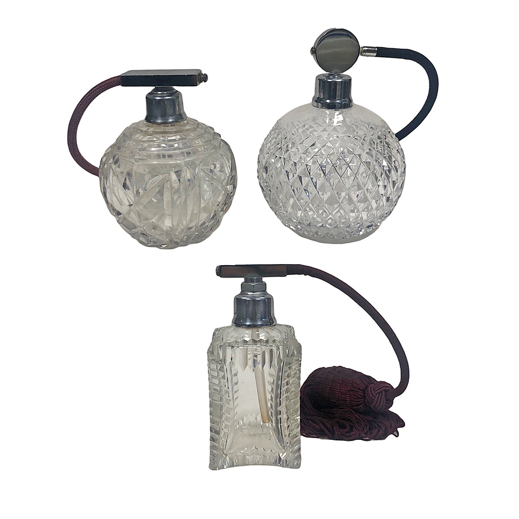 CLEAR CUT GLASS SCENT / PERFUME BOTTLE WITH PUFFER AS LISTED
