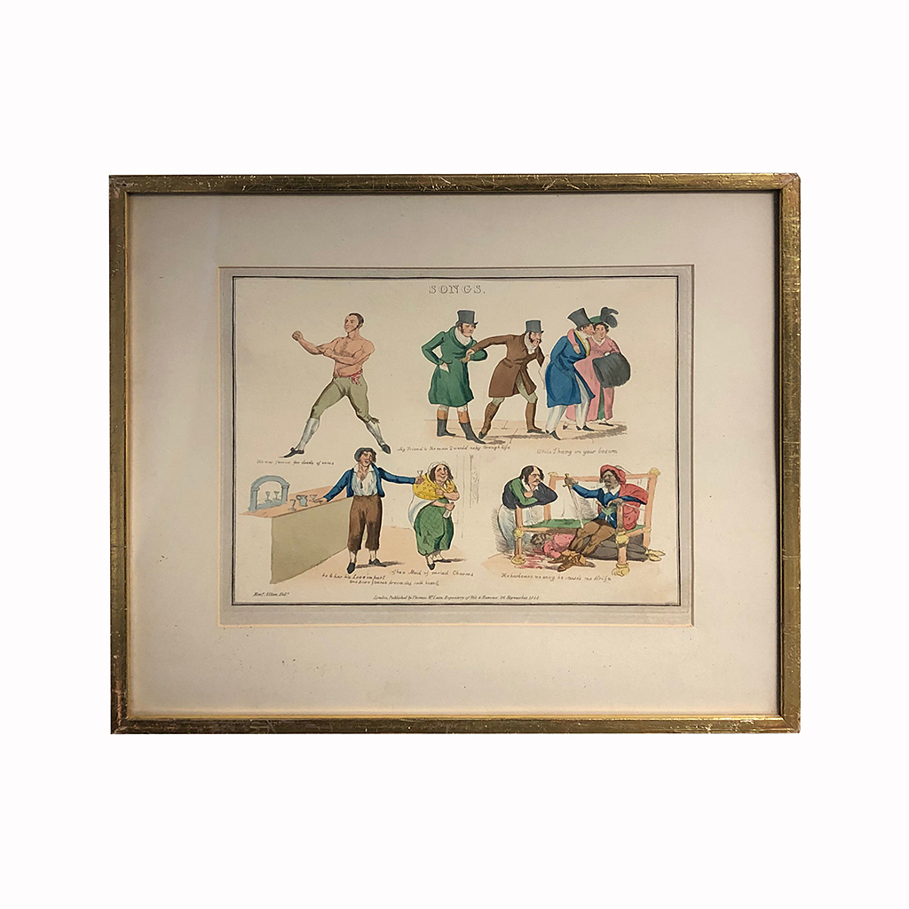 COLOUR CARTOON ILLUSTRATED 19THC SONGS IN A GILT FRAME 13/i X14/i