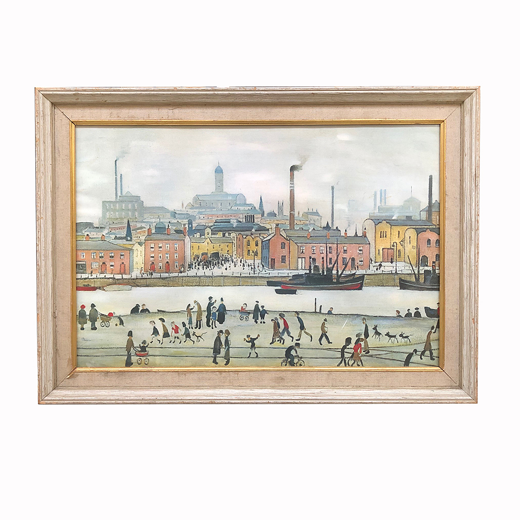 COLOUR PRINT FACTORY AND CANAL SCENE LS LOWRY IN A WHITE FRAME
