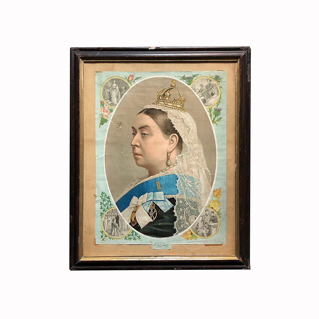 COLOUR PRINT PORTRAIT OF QUEEN VICTORIA AFTER A PHOTOGRAPH BY ALEXANDER BASSANO IN A DARK WOOD FRAME 27 X 21