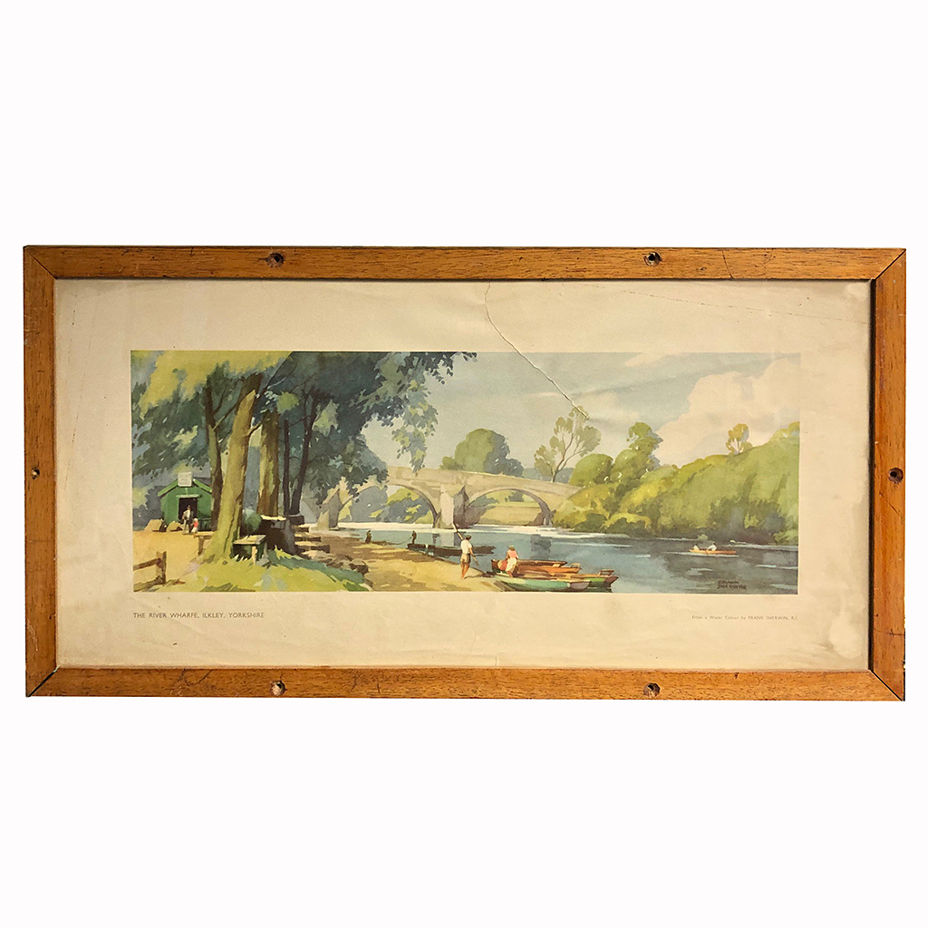 COLOUR RAILWAY CARRIAGE PRINT RIVER SCENE IN A PLAIN WOOD FRAME 10/i X 20/i
