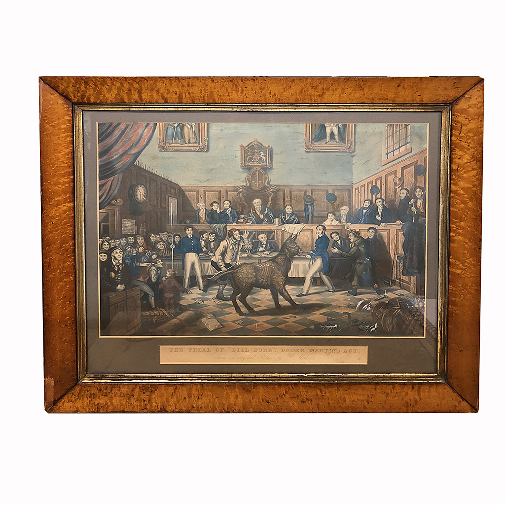 COLOUR VICTORIAN HUMOROUS PRINT THE TRIAL OF BILL BURNE IN A MAPLE FRAME 23 X 30