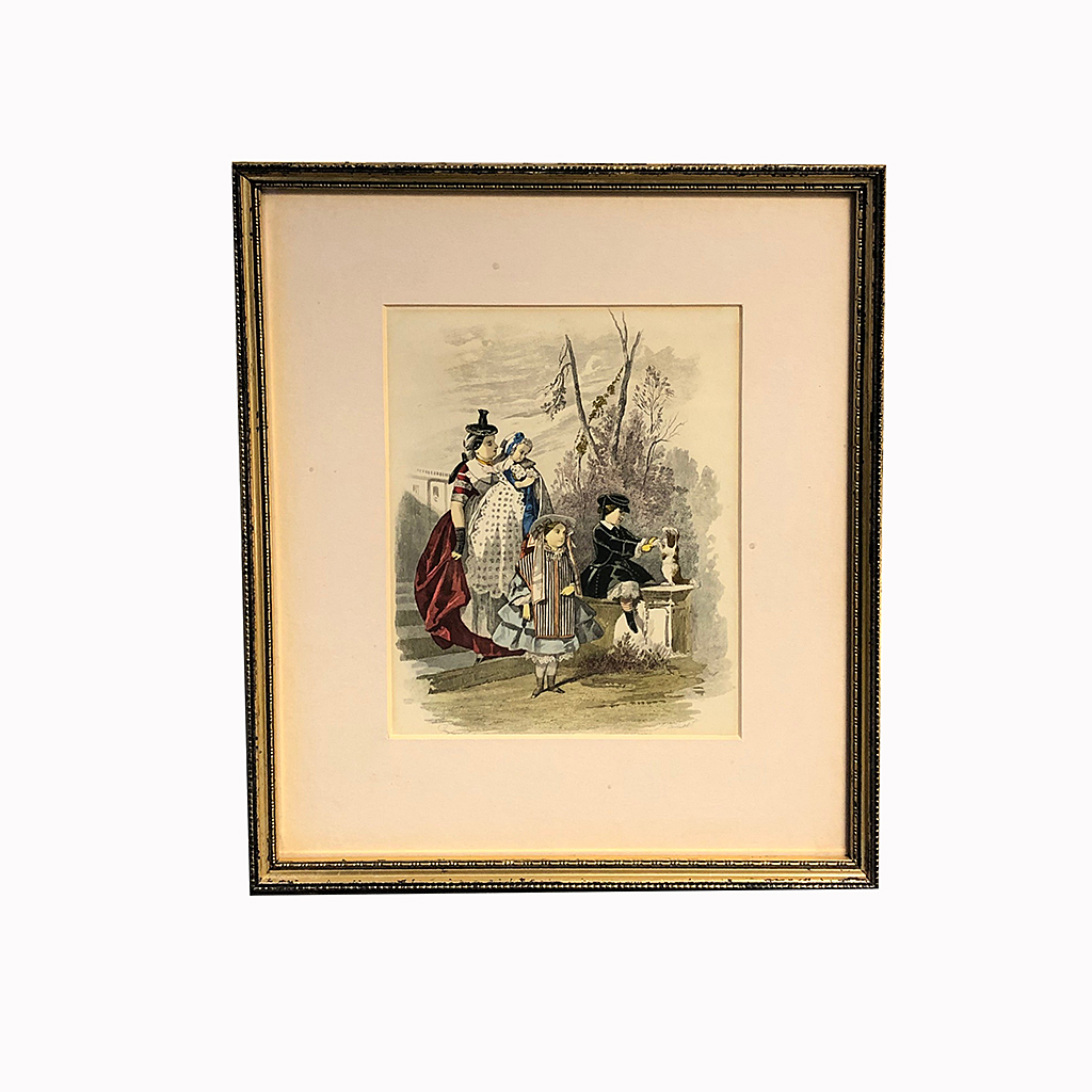 COLOURED FASHION PRINT IN A SLIM GILT FRAME WITH CREAM MOUNT 12/i X 10/i