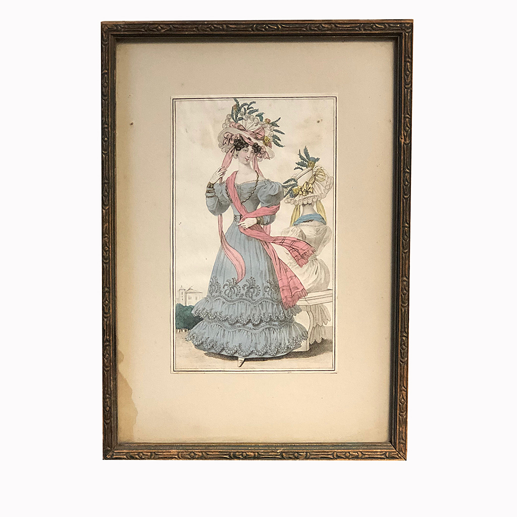 COLOURED LADIES FASHION PRINT IN A BROWN FRAME 10/i X 8/i