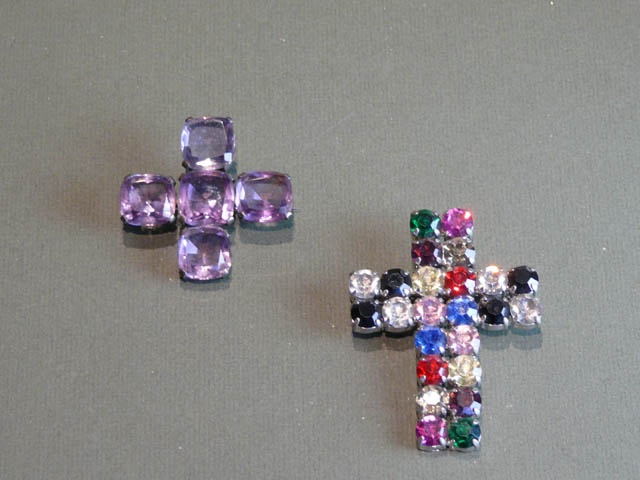 COLOURED PASTE CRUCIFIX / CROSS BROOCH