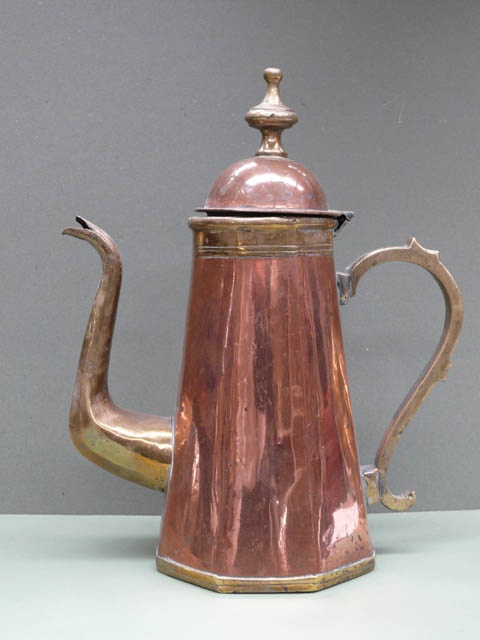 COPPER AND BRASS MOROCCAN HEXAGONAL COFFEE POT 11/i