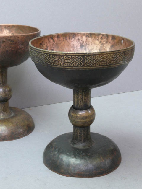 COPPER / BRONZE GOBLET MEDIEVAL STYLE WITH CELTIC RIM 15 CM HIGH (X102)
