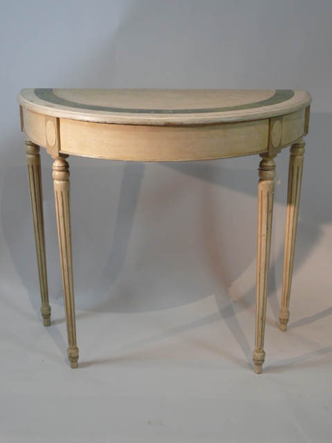 CREAM AND BEIGE DEMI LUNE CONSOLE TABLE 83 CM HIGH 89 CM WIDE 45 CM DEEP (X2)