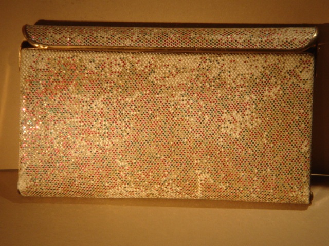 CREAM AND SILVER CLUTCH HANDBAG 20 CM WIDE
