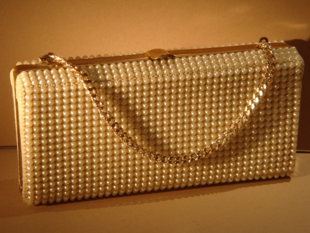 CREAM FAUX PEARL HANDBAG 21 CM WIDE