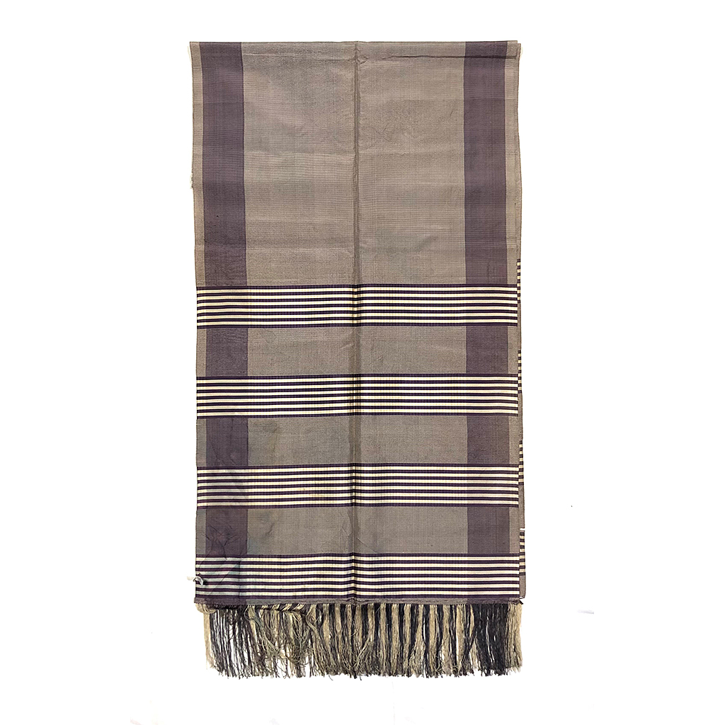 CREAM, GREY, TURQUOISE GEORGIOAN SILK SHAWL / STOLE WITH FRINGING 8'6'' LONG / 2' WIDE