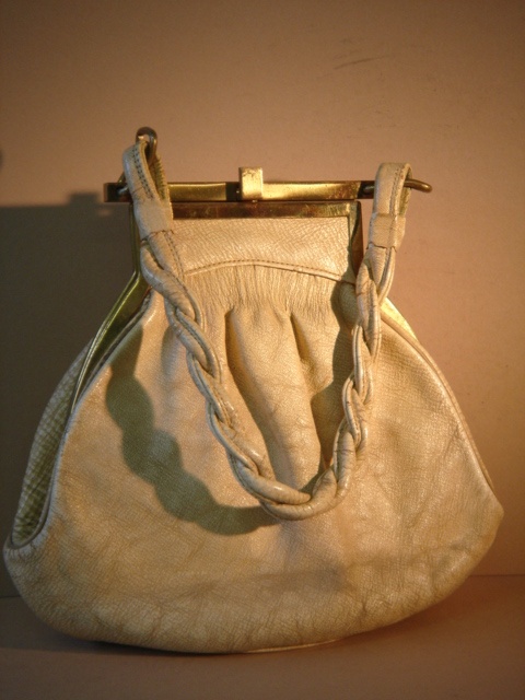 CREAM LEATHER HANDBAG 22 CM WIDE