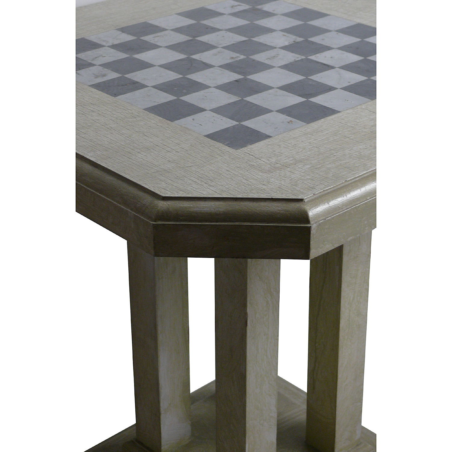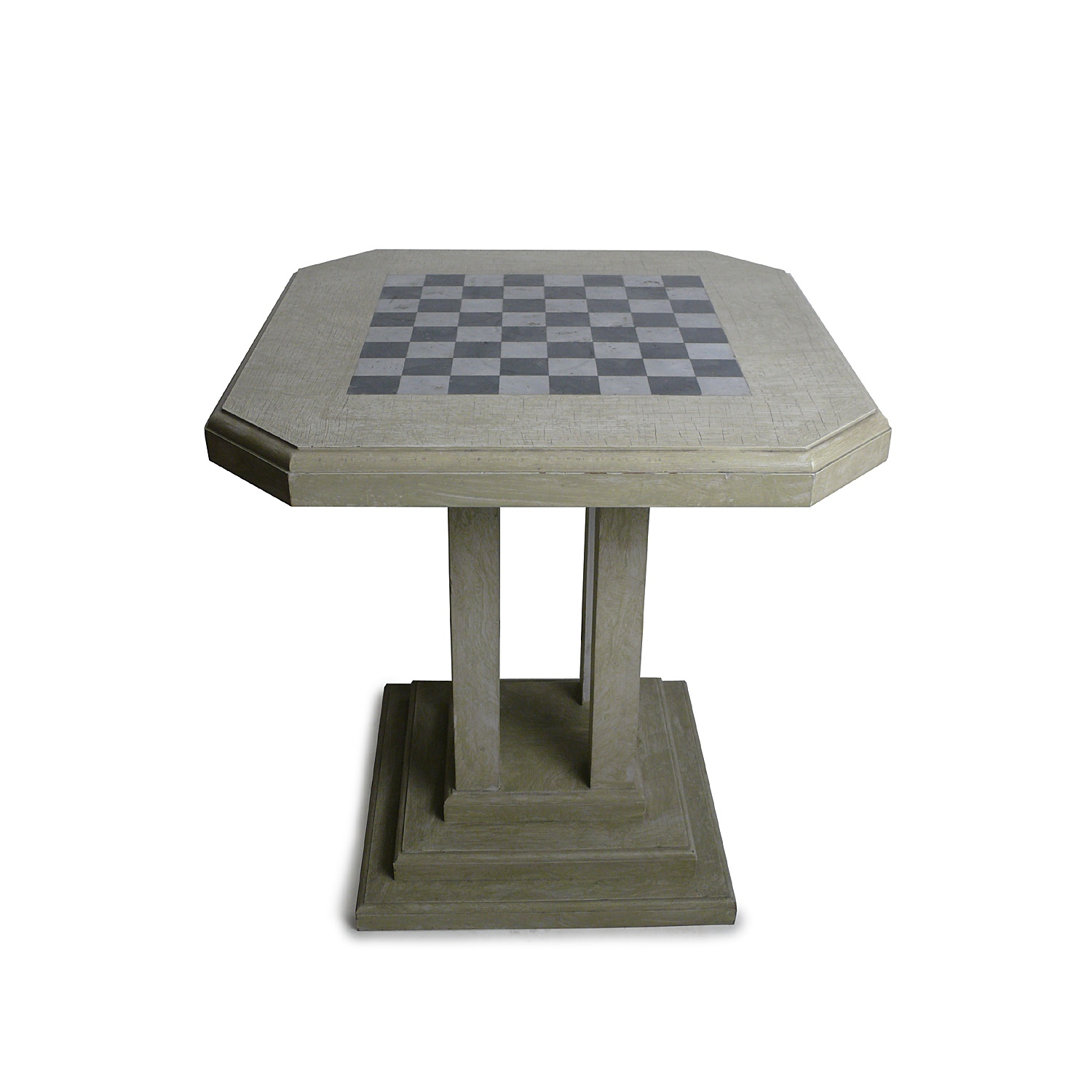CREAM PAINTED WOODEN CHESS TABLE WITH CANTED CORNERS 73 CM HIGH 69 CM WIDE 69 CM DEEP
