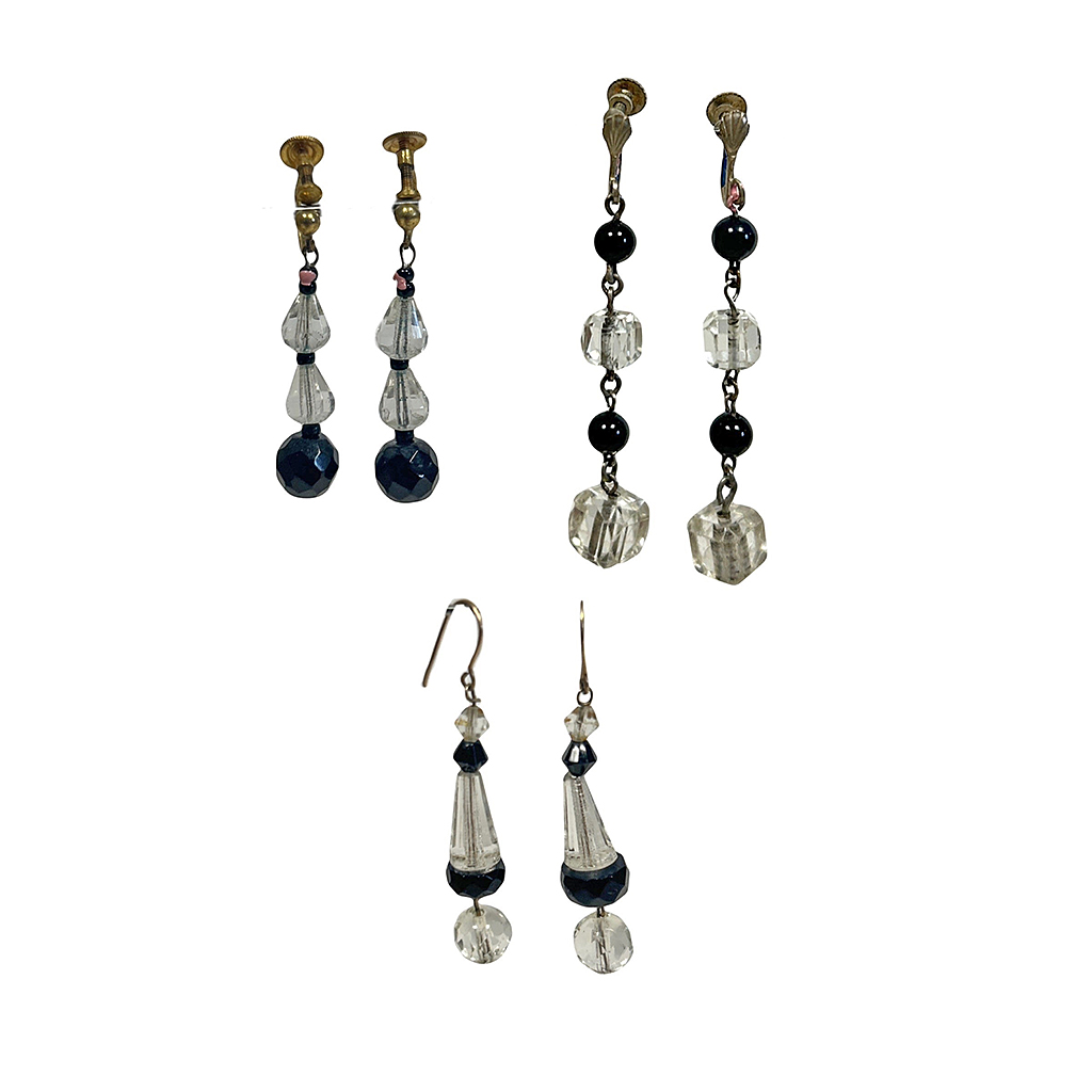 CRYSTAL AND BLACK GLASS DROP EARRINGS