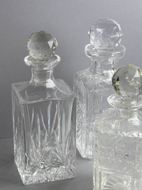 CUT GLASS SQUARE SPIRIT DECANTER AND STOPPER AS LISTED (X20)