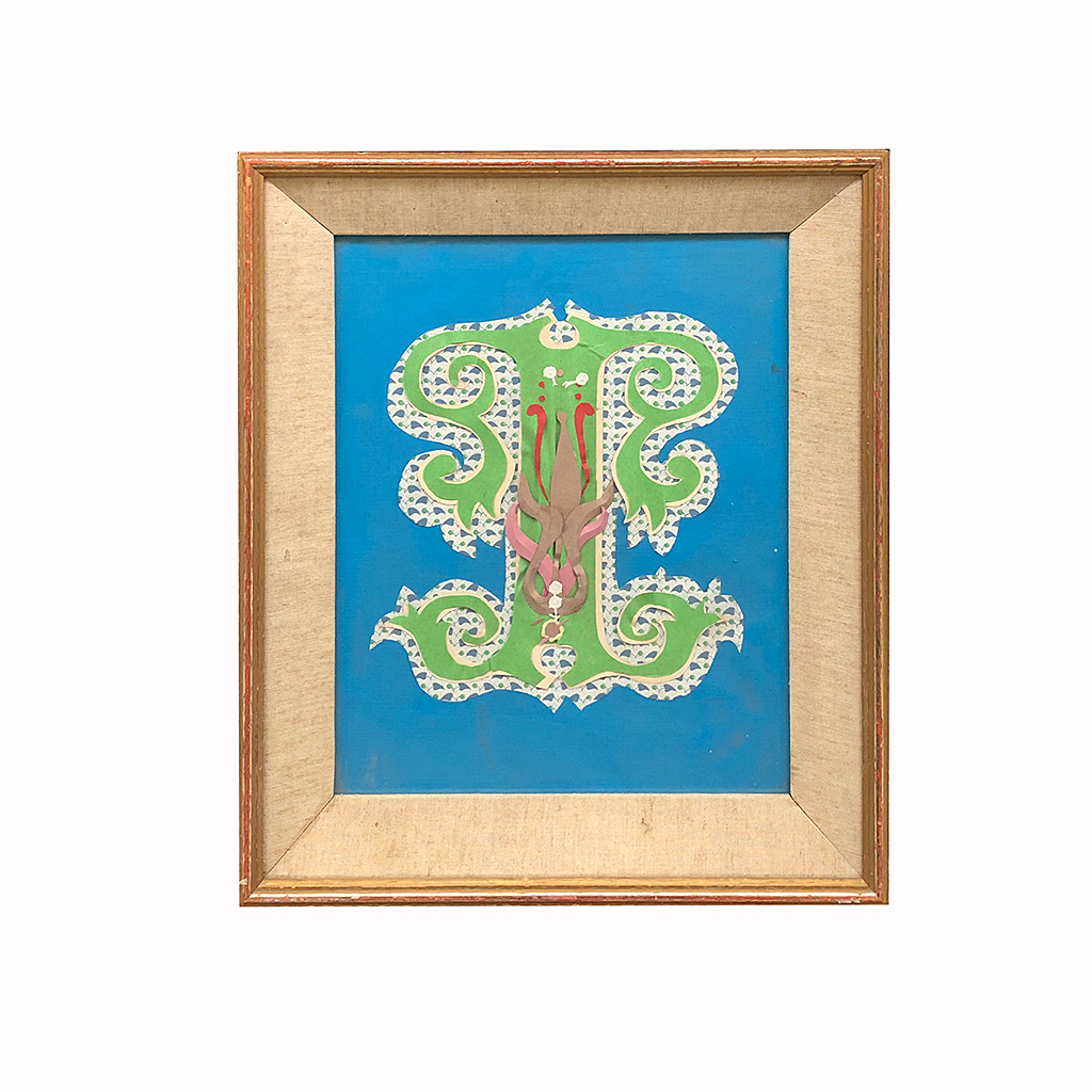 CUT PAPER COLLAGE OF THE LETTER T IN A GILT BOX FRAME TERRY JACOBS CIRCA 1967 18/i X 15/i