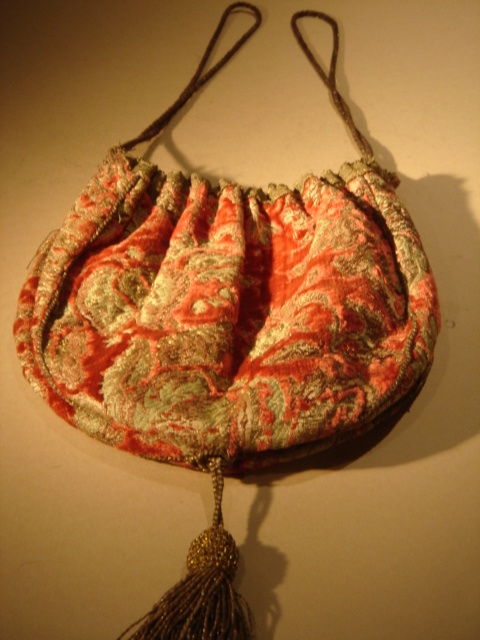 DAMSEN GENOESE CUT VELVET DRAW STRING HANDBAG 20 CM WIDE