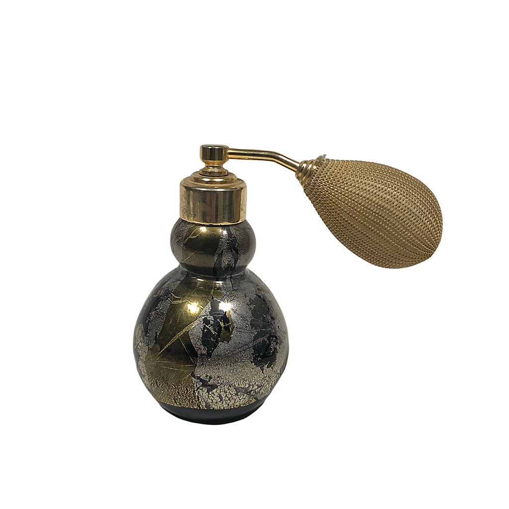 DARK BLOWN GLASS AND GOLD LEAF DECORATION SCENT BOTTLE WITH PUFFER