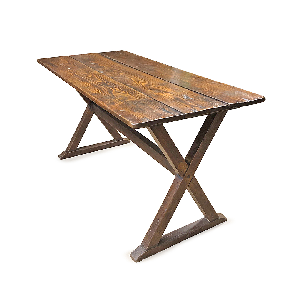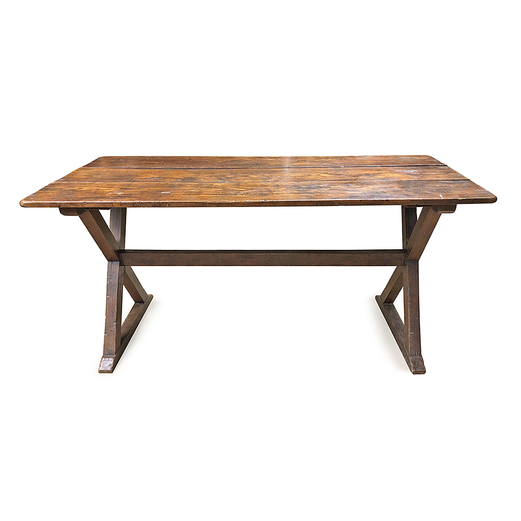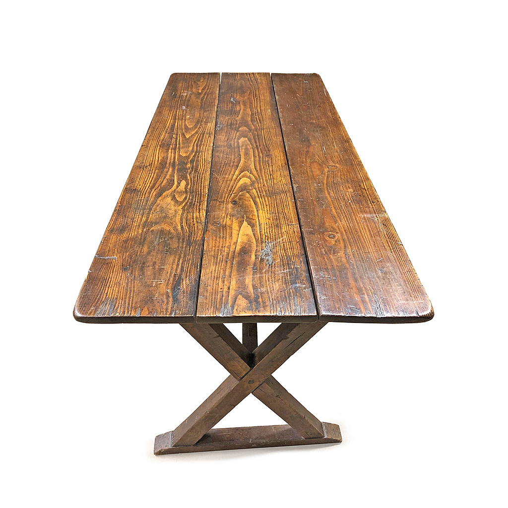 DARK ELM STAINED X LEG PINE KITCHEN TABLE 152 CM LONG 67 CM WIDE 75 CM HIGH