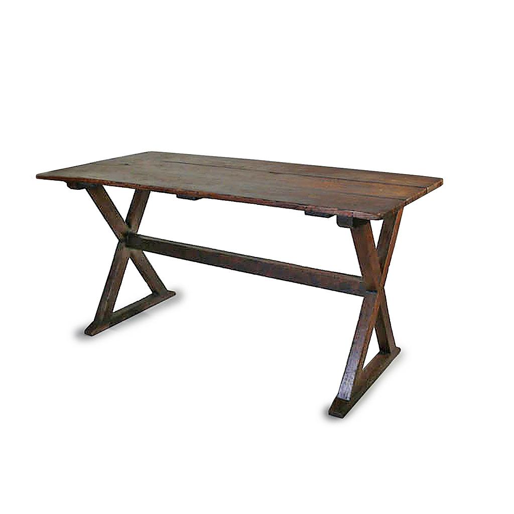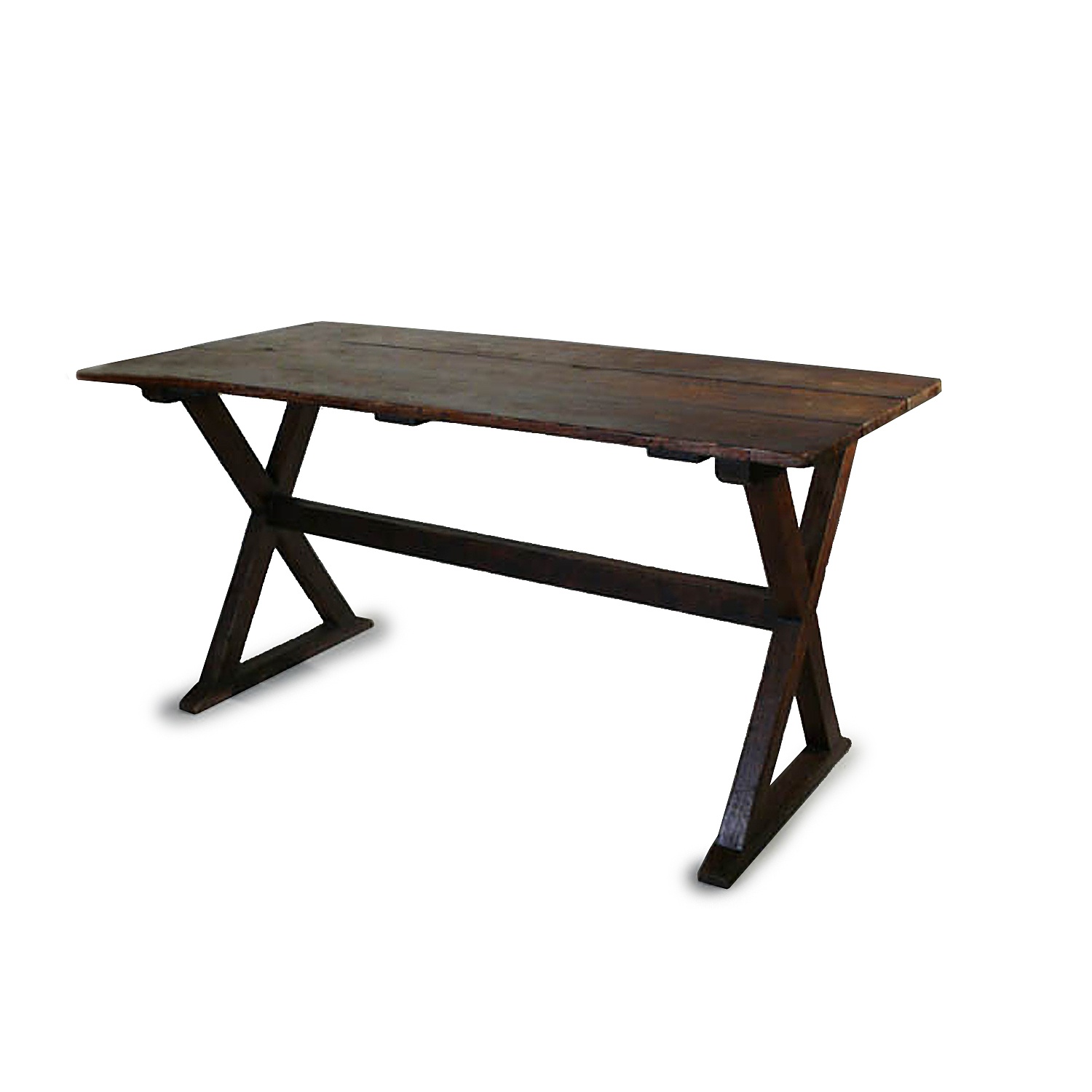 DARK ELM X LEG KITCHEN TABLE 213 CM LONG 75 CM WIDE 76 CM HIGH