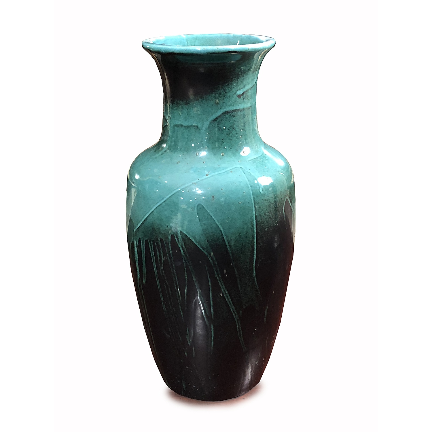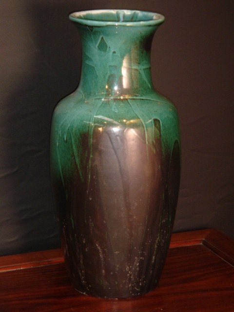 DARK GREEN GLAZED TINGEWICK VASE CHINA 14/i HIGH (X2)