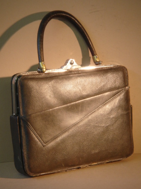 DARK GREEN LEATHER HANDBAG 21 CM WIDE