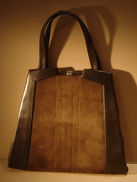 DARK TAN LEATHER AND SUEDE HANDBAG 20 CM WIDE