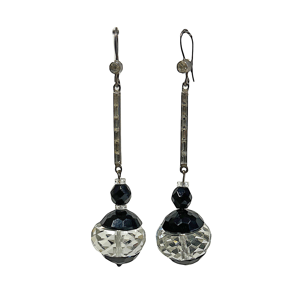 ART DECO LARGE CRYSTAL AND BLACK GLASS DROP EARRINGS