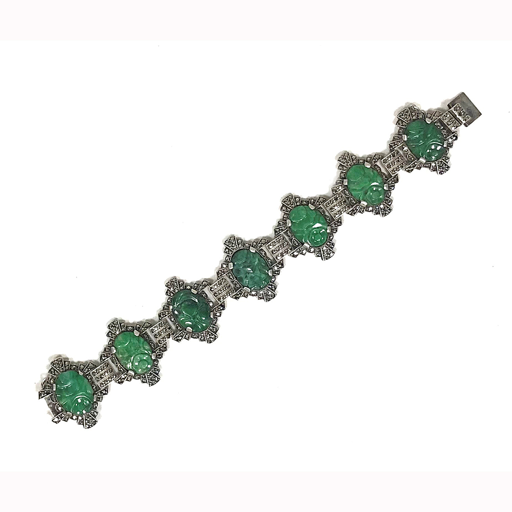 DECO SILVER MARCASITE AND JADE BRACELET