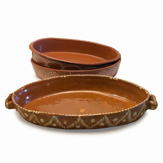 DECORATED OVAL EARTHENWARE BAKING DISH 24 CM - 37 CM LONG (X3)