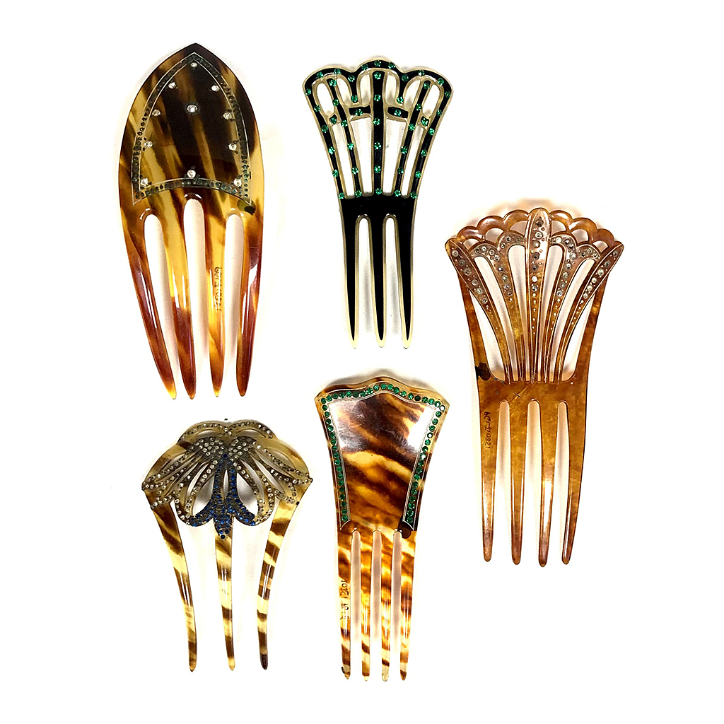 FAUX TORTOISESHELL / BONE HAIR COMB / SLIDE WITH DECORATIVE DESIGN AND PASTE STONES