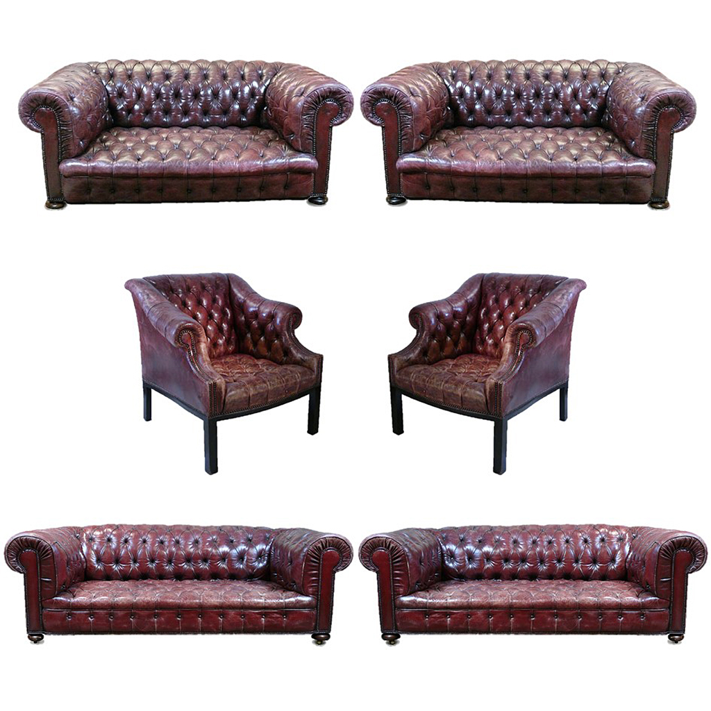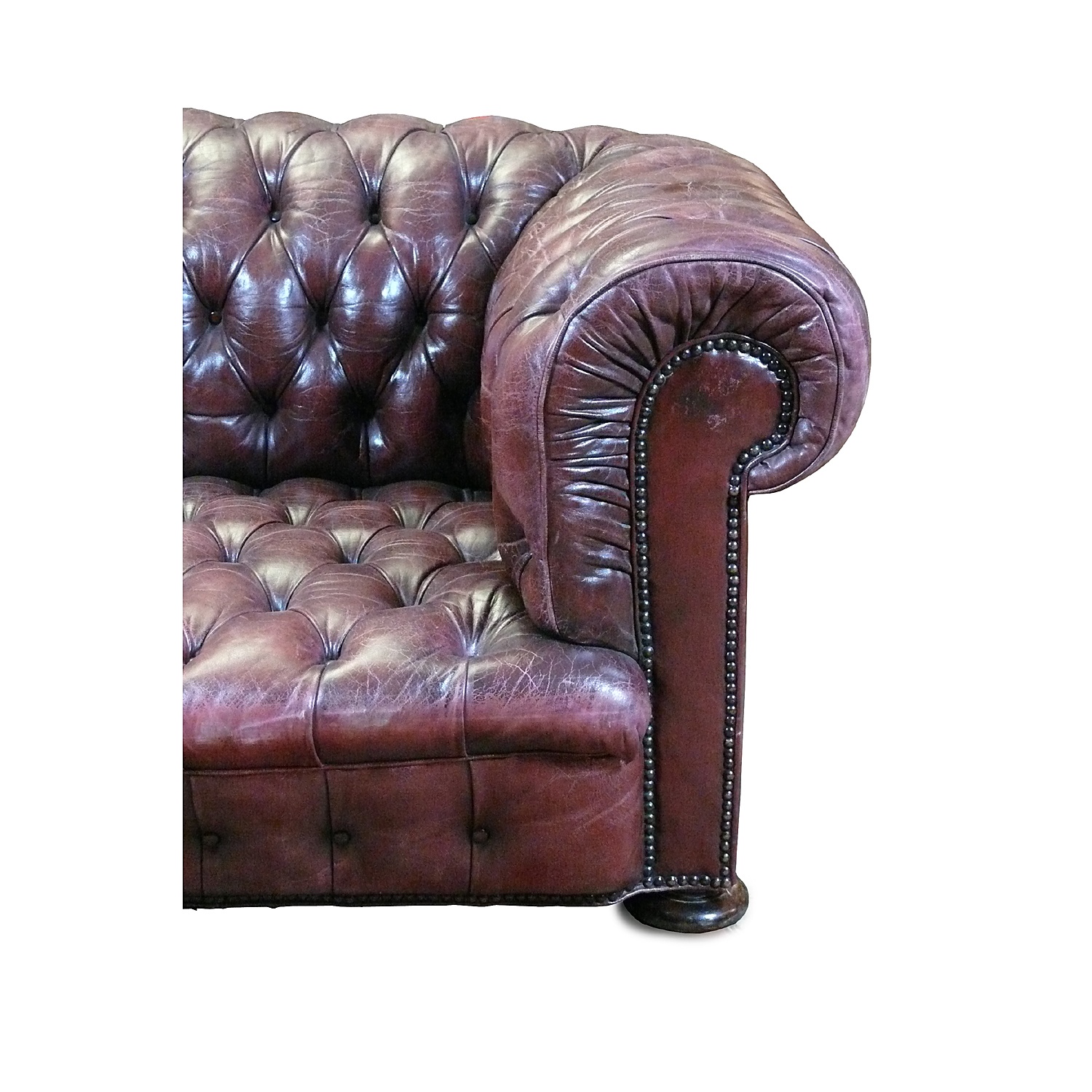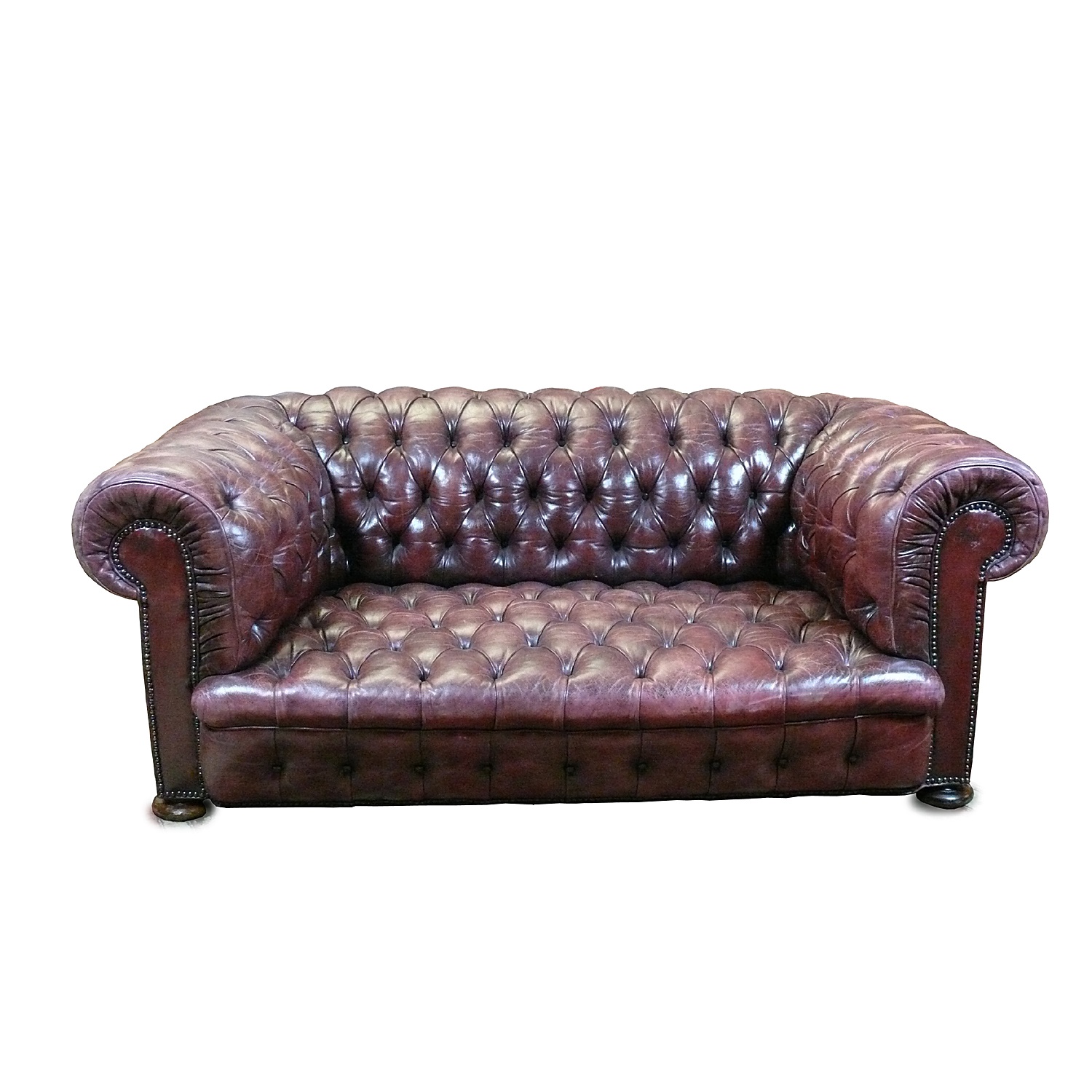DEEP BUTTONED BURGUNDY LEATHER CHESTERFIELD SETTEE / SOFA 2 SEAT 167 CM LONG (X2)