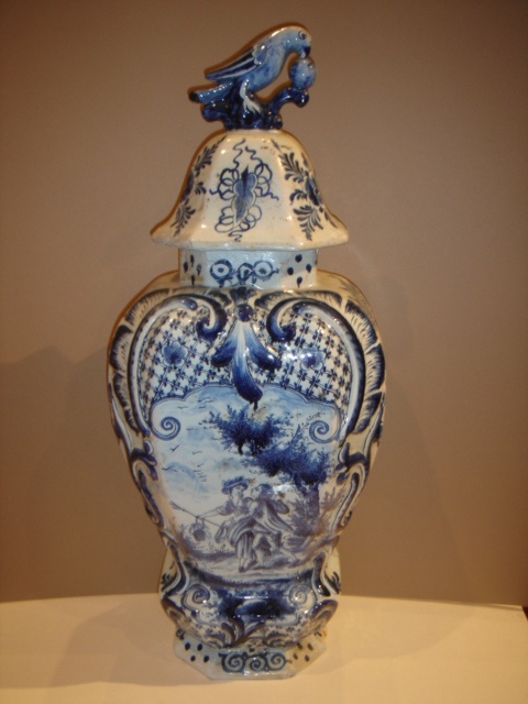 DELFT BLUE AND WHITE SHAPED SQUARE VASE AND LID 22/i HIGH