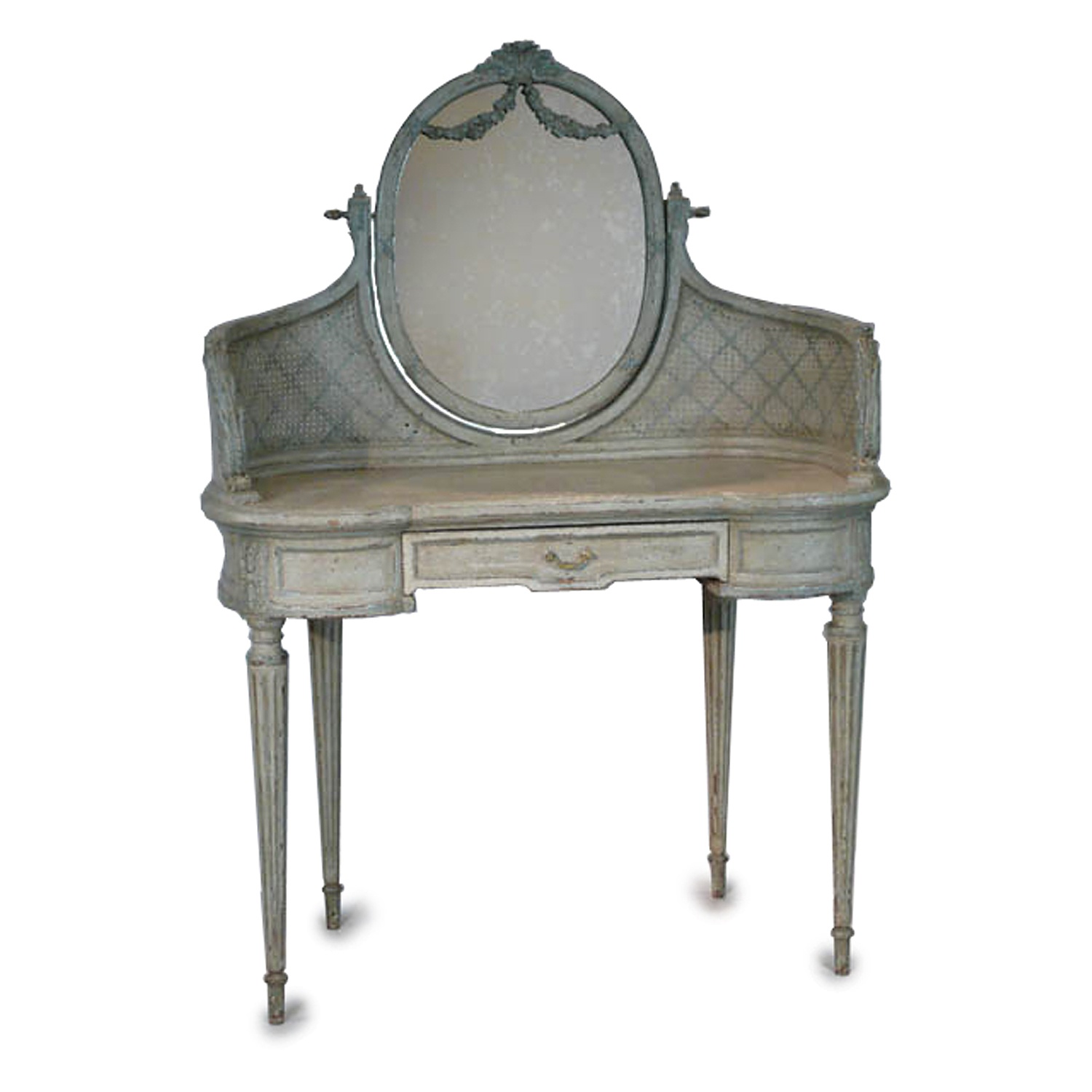 DRESSING TABLE LOUIS XVI STYLE PAINTED DECORATION WITH RATTAN SIDES 102 CM WIDE