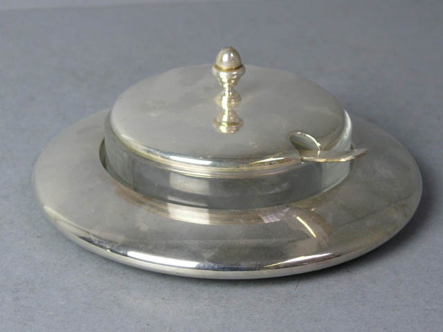 E.P. SHALLOW SILVER BUTTER DISH AND LID WITH GLASS LINER 16 CM DIAM.