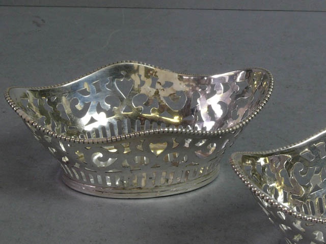 E.P. SILVER BON BON DISH / NUT BASKET OVAL 12 CM (X2)