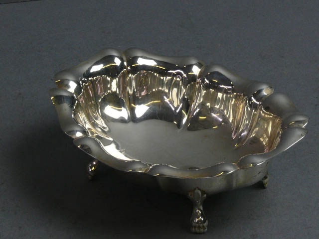 E.P. SILVER BON BON DISH ORNATE OVAL ON FOUR FEET 13 CM LONG