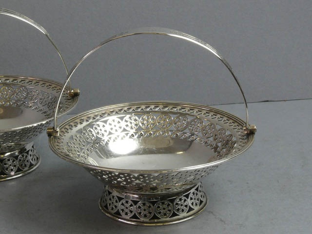 E.P. SILVER BON BON DISH PIERCED WITH SWING HANDLE 14 CM DIAM. (X2)